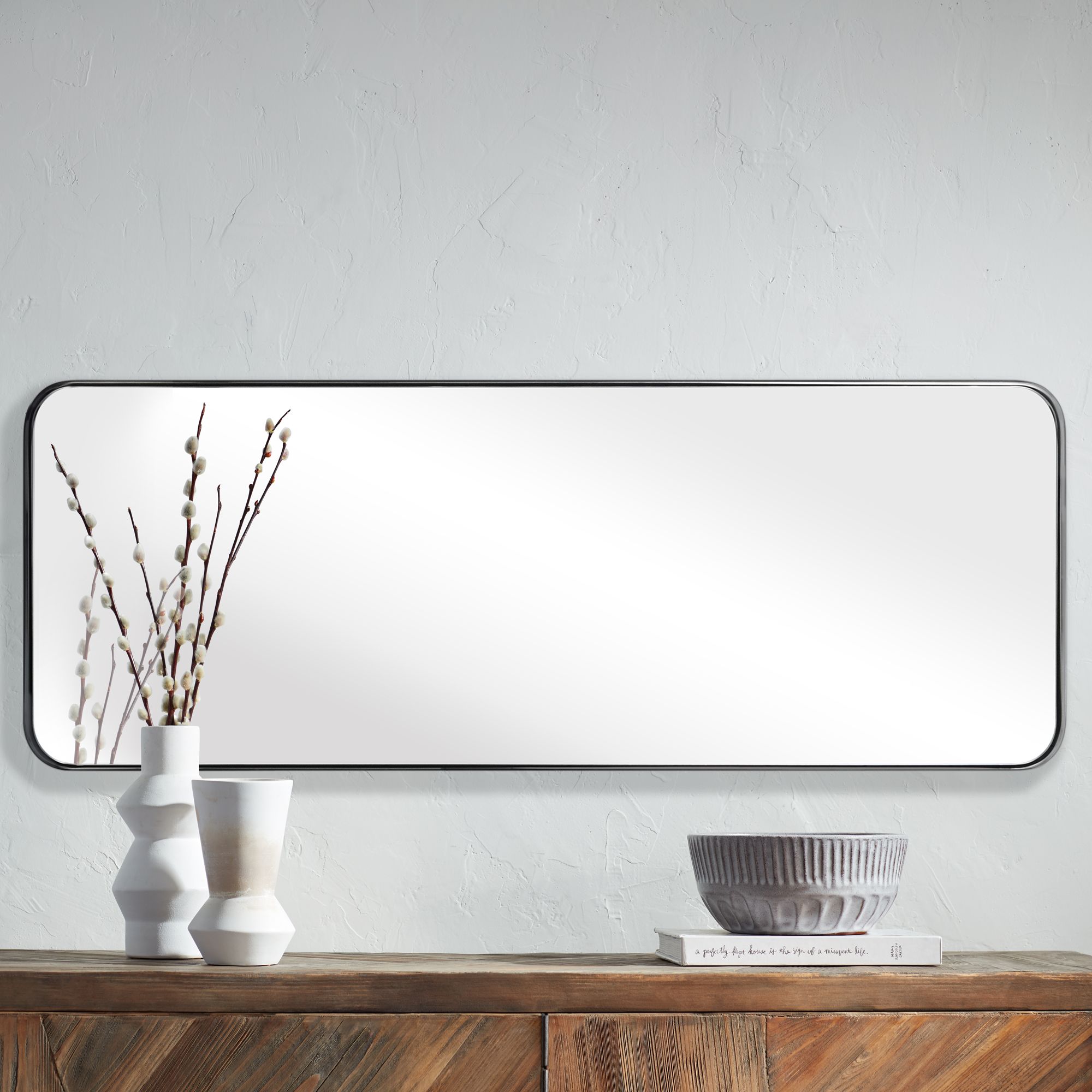 Ultra Brushed Black 18" x 48" Rectangular Framed Wall Mirror