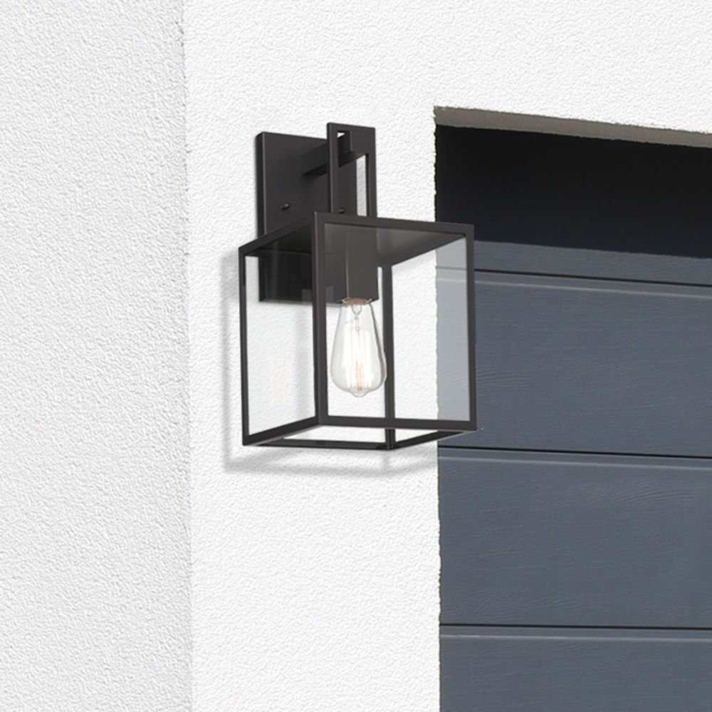 Preston 14.75 in. 1-Light Matte Black Modern Outdoor Wall Lantern