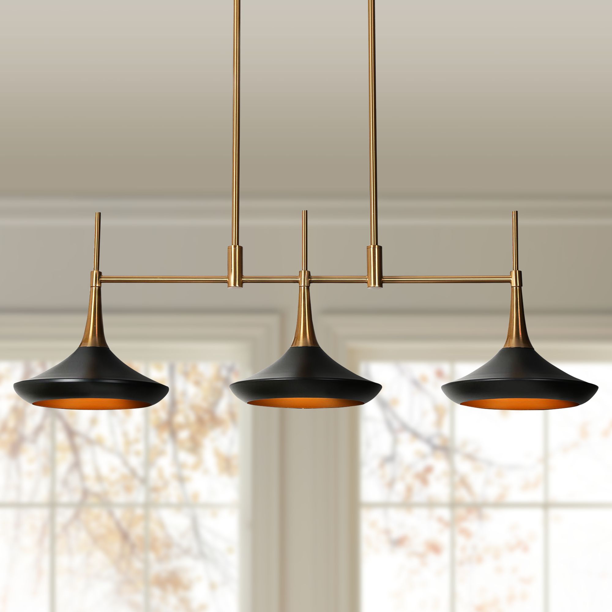 LNC Lacos 34 1/2" Modern Brushed Gold Black 3-Light Linear Pendant