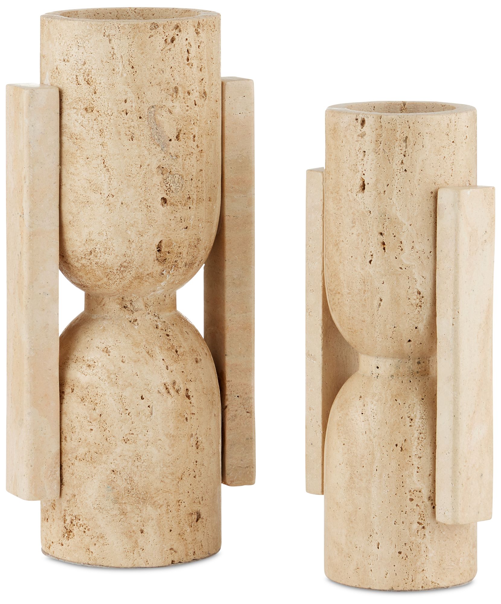 Currey & Company Travertine Stone Vase Face to Face Set of 2