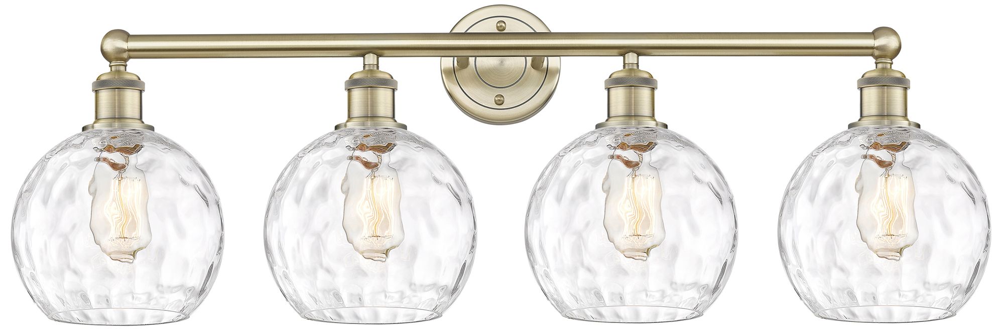 Athens 35"W 4 Light Antique Brass Bath Vanity Light w/ Water Glass Sha