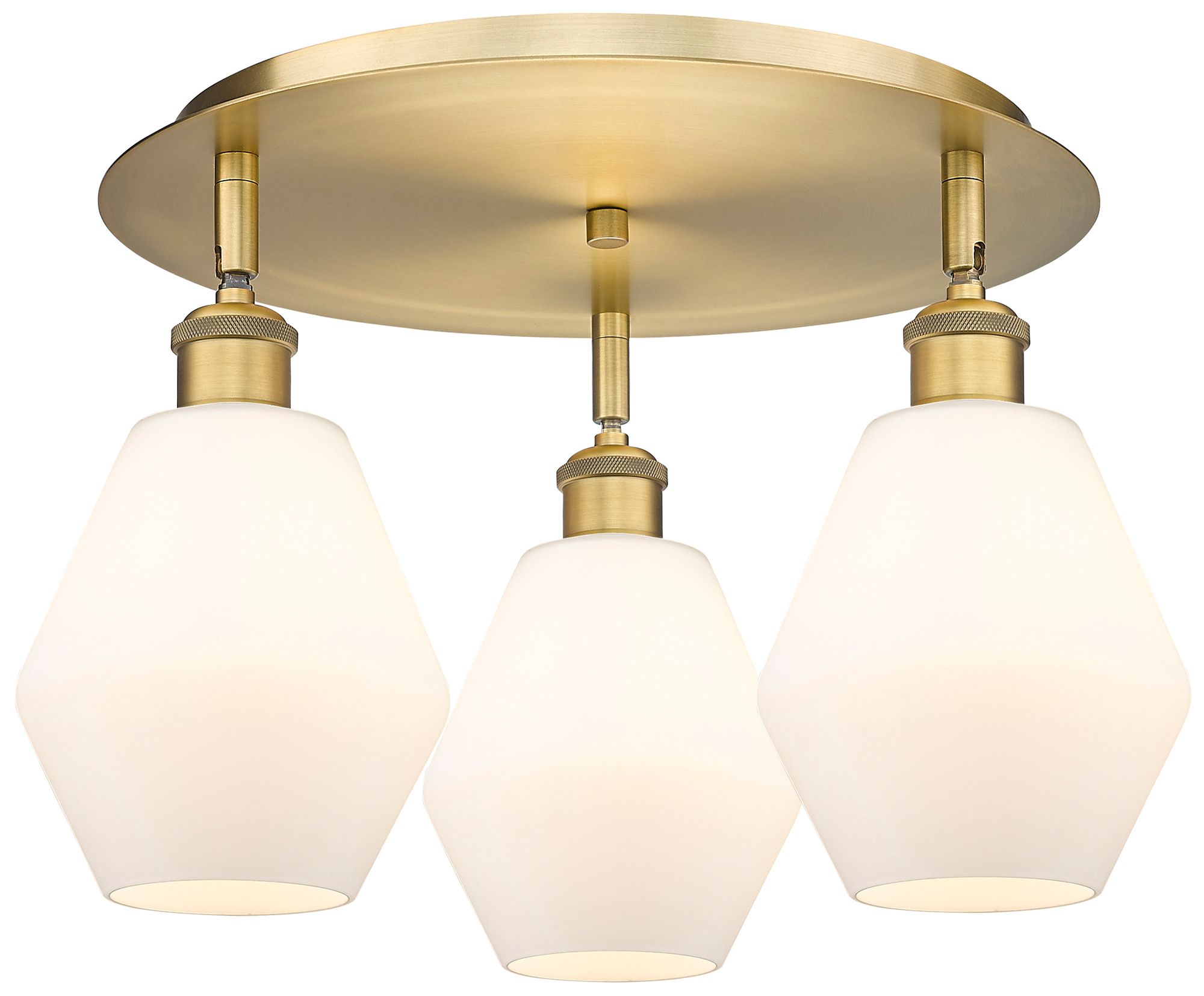 Cindyrella 17.75"W 3 Light Brushed Brass Flush Mount w/ Cased White Sh