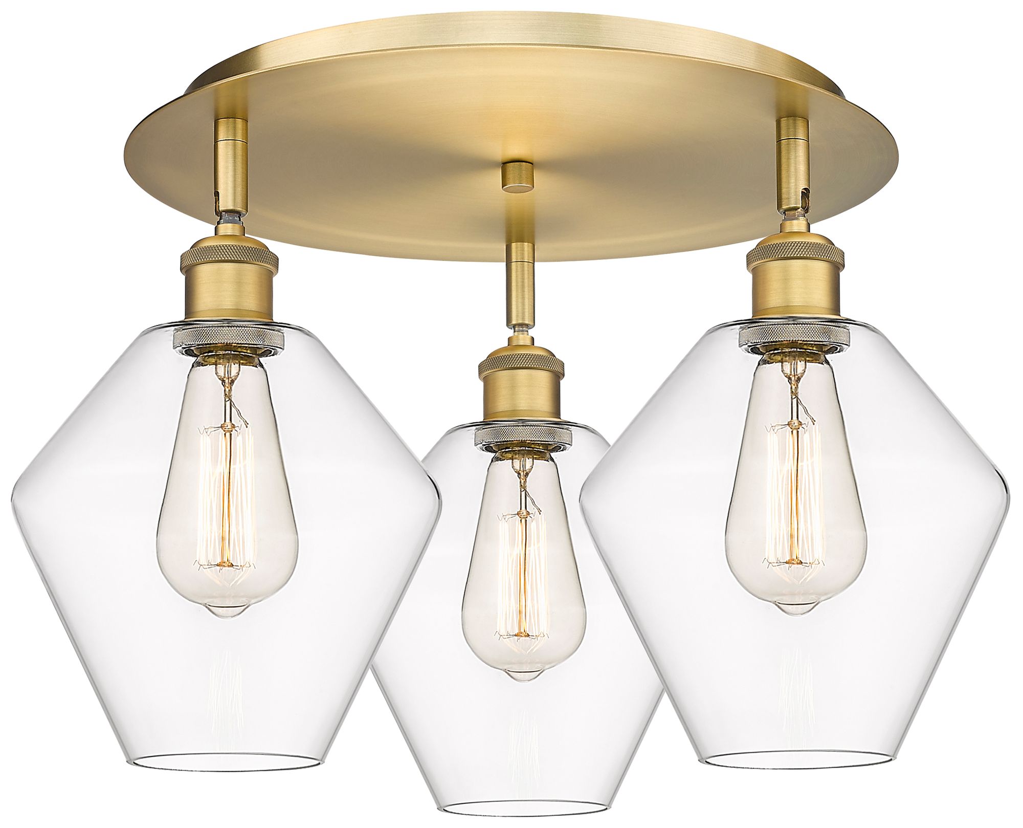 Cindyrella 19.75"W 3 Light Brushed Brass Flush Mount With Clear Glass