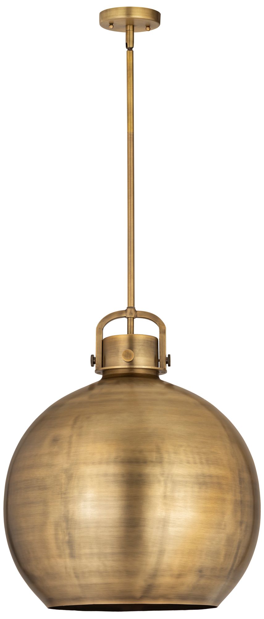 Newton Metal Sphere 18"W Brushed Brass Stemmed Pendant w/ Brass Shade