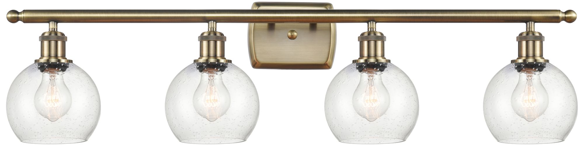 Athens 6" 4 Light 36" Bath Light - Antique Brass - Seedy Shade