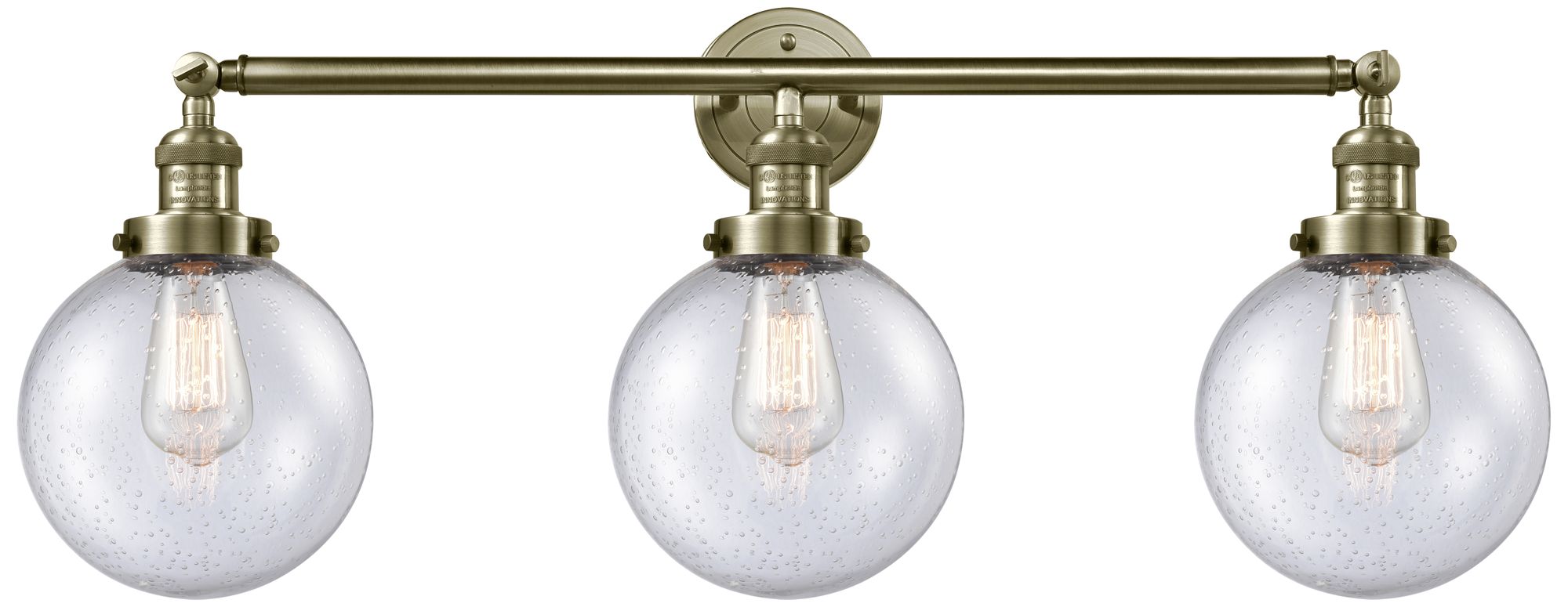 Beacon 3 Light 32" Bath Light - Antique Brass - Seedy Shade