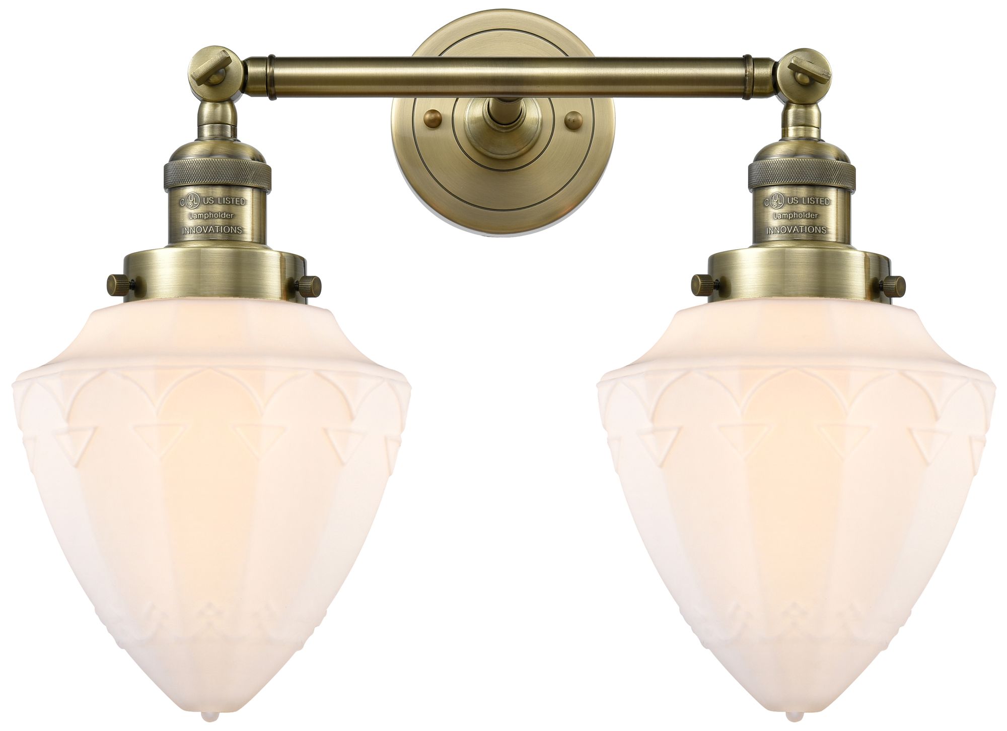 Bullet 18" 2-Light Antique Brass Bath Light w/ Matte White Shade