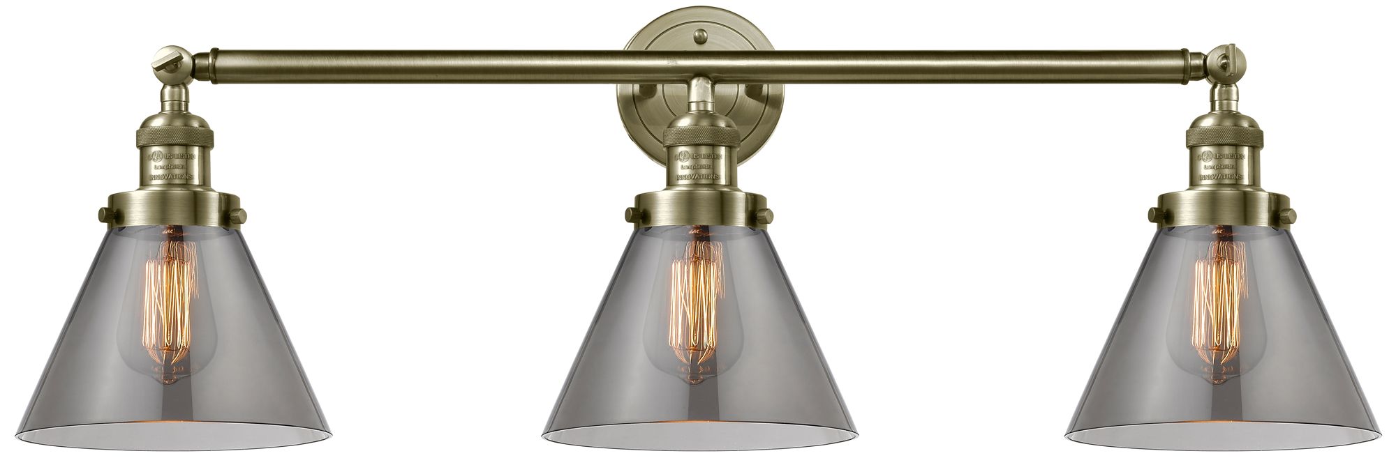 Cone 3 Light 32" Bath Light - Antique Brass - Plated Smoke Shade