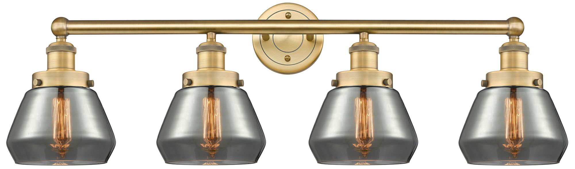Fulton 33.5"W 4 Light Brushed Brass Bath Vanity Light w/ Plated Smoke