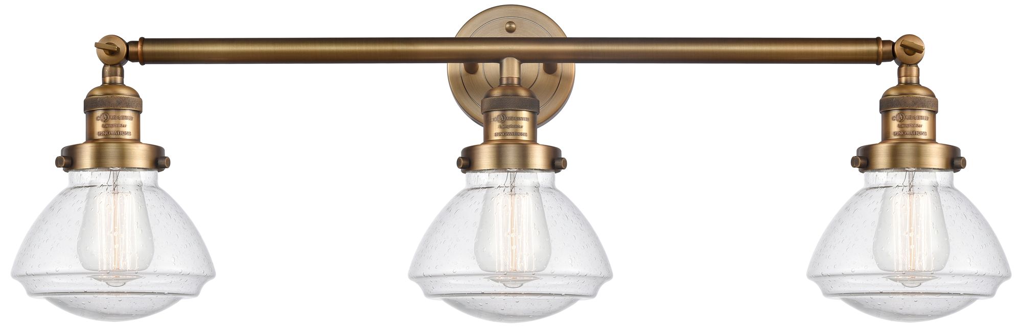 Olean 30.75" Wide 3 Light Brushed Brass Bath Vanity Light w/ Seedy Sha