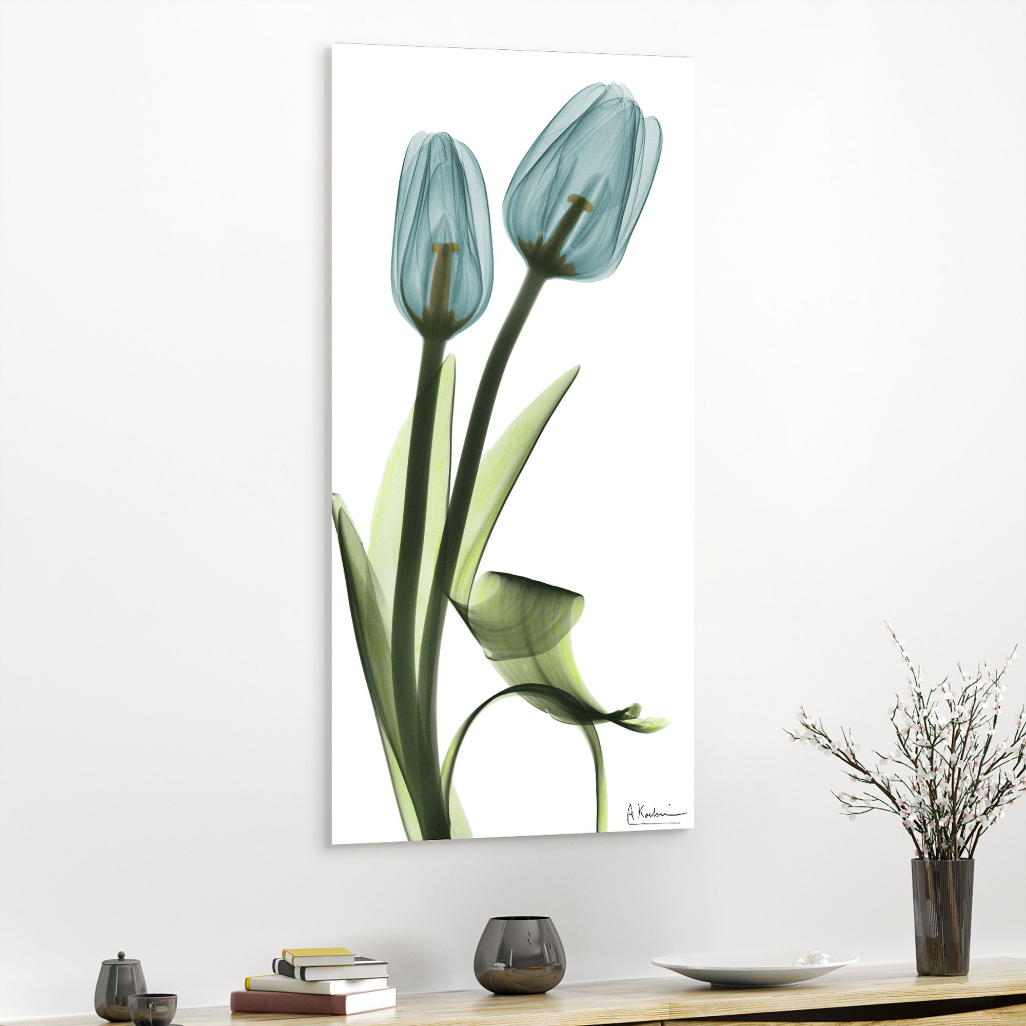 Blue Tulips 48"H Floating Tempered Glass Graphic Wall Art