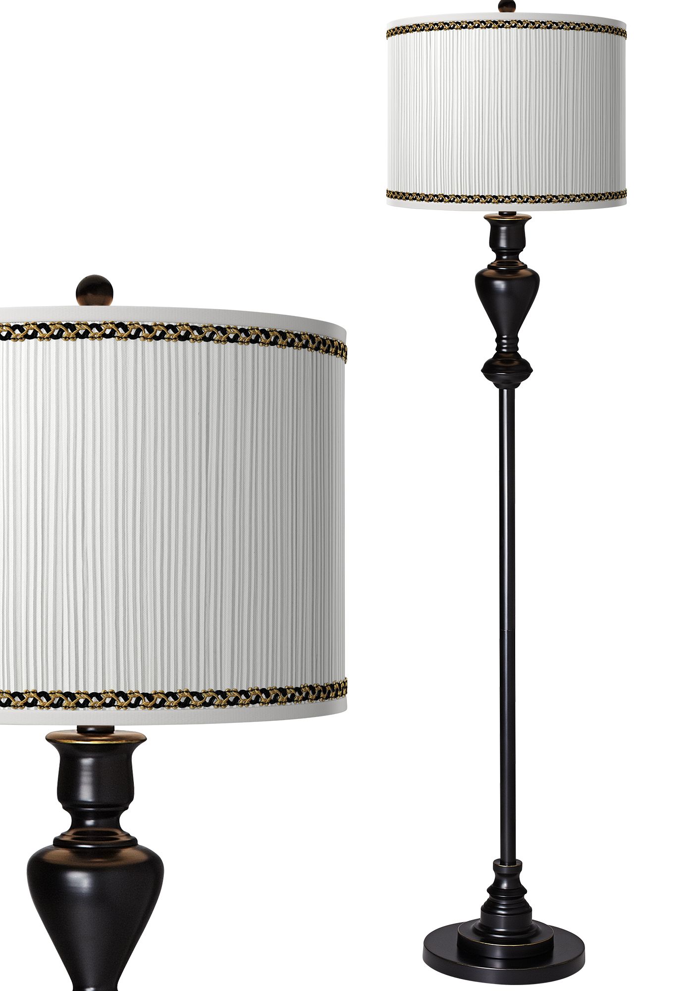 Faux Pleated Giclee Print Lamp Shade with Black Bronze Floor Lamp