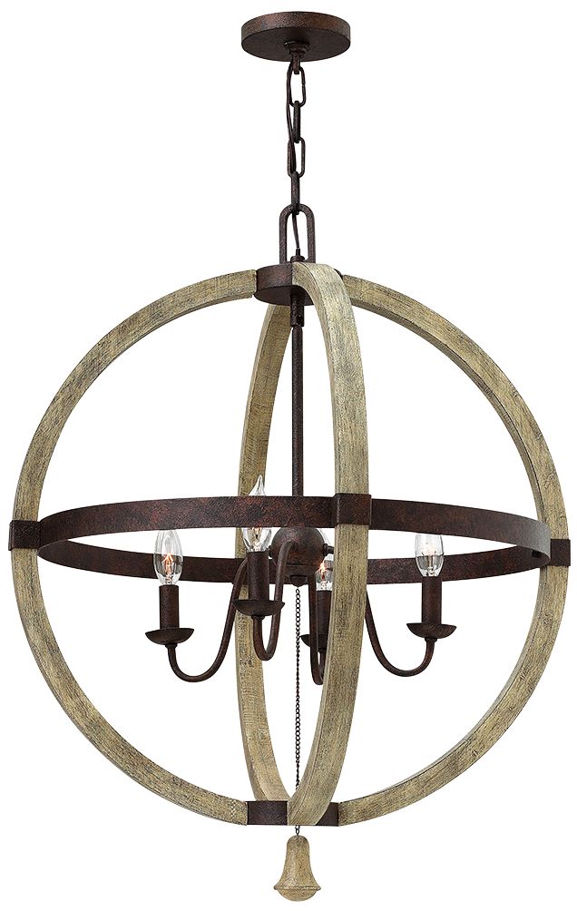 Hinkley Middlefield 30" Wide Iron Rust and Wood Open Orb Chandelier