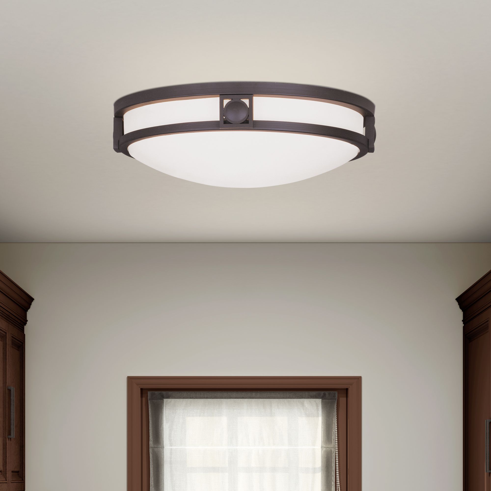 Access Lighting Atom 14" Wide Bronze and Opal Glass LED Flush Mount