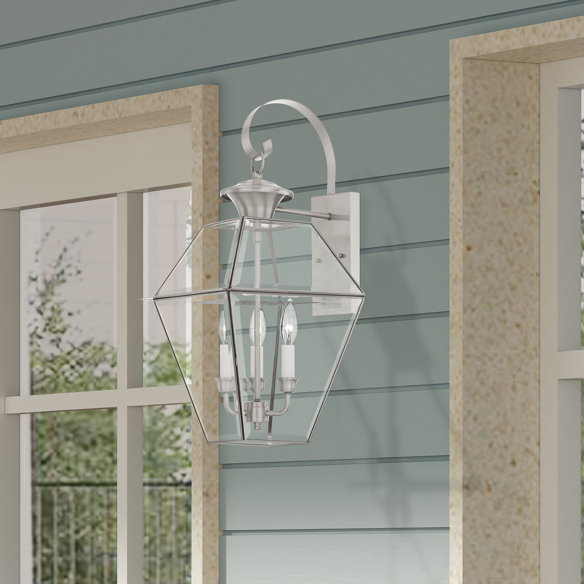 Livex Westover 22 1/2"H Brushed Nickel 3-Light Outdoor Wall Light