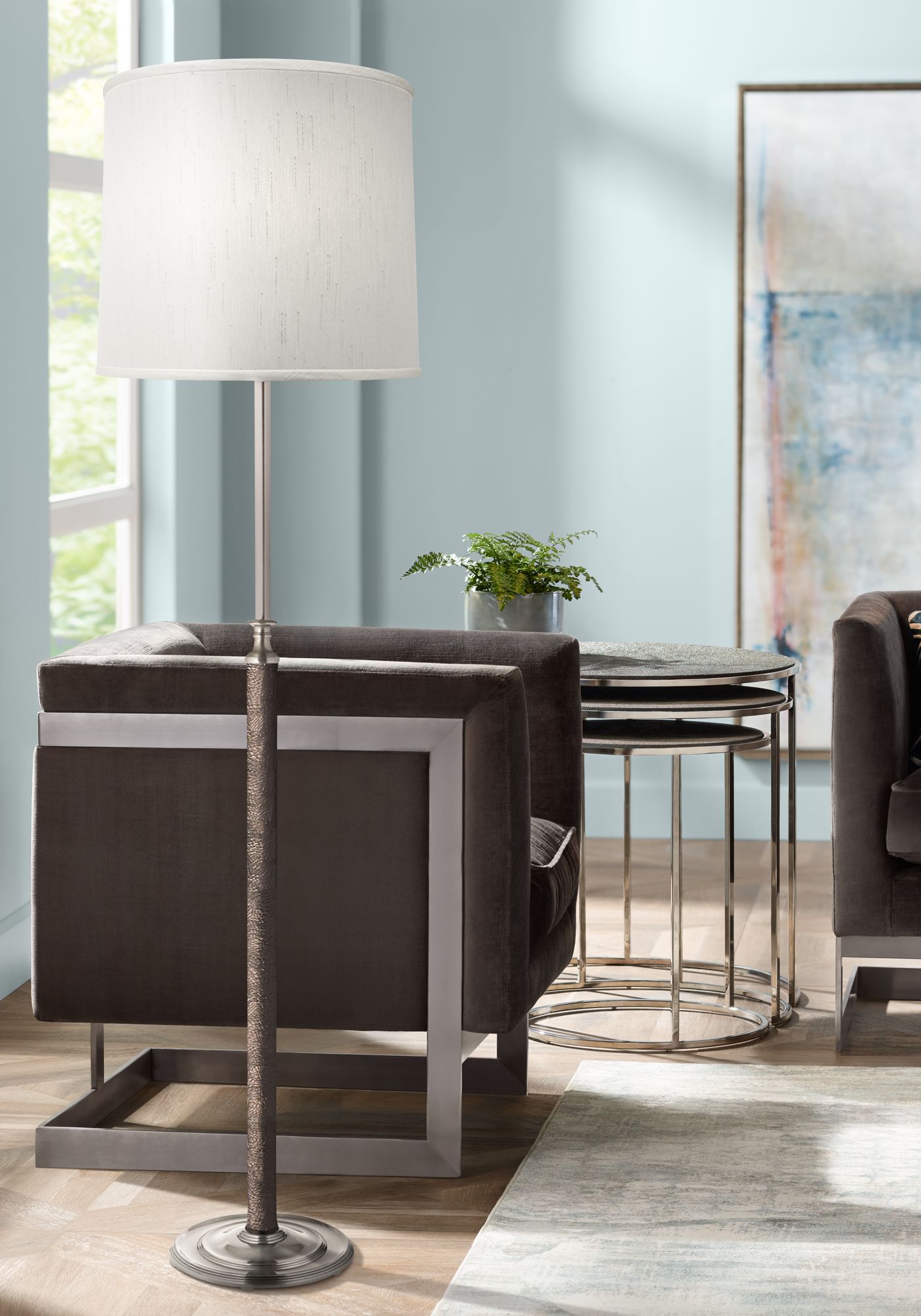 Parquet Brushed Nickel Pull Chain Floor Lamp