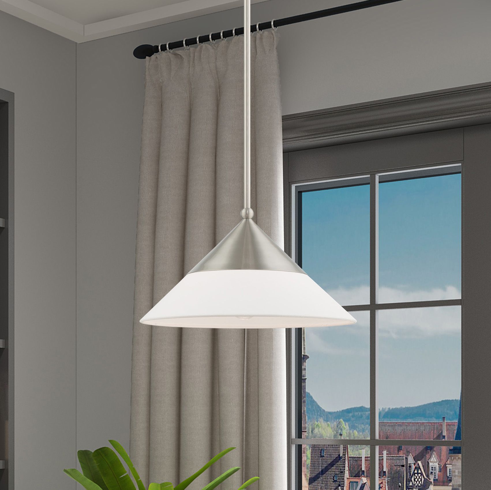 Livex Stockholm 15" Wide Brushed Nickel Cone Pendant Light
