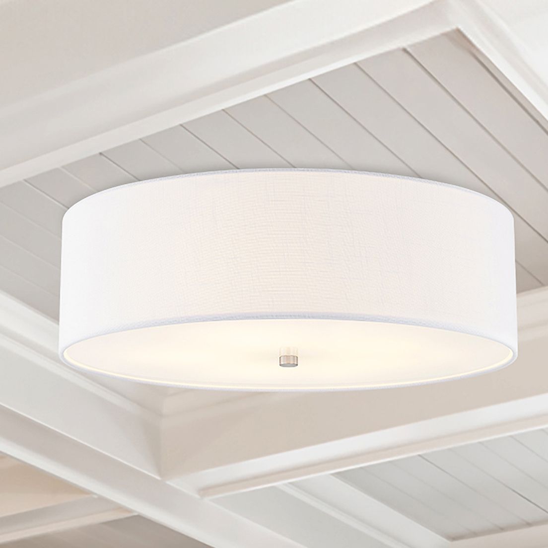 Textile 24"W Brushed Nickel Ceiling Light with White Shade