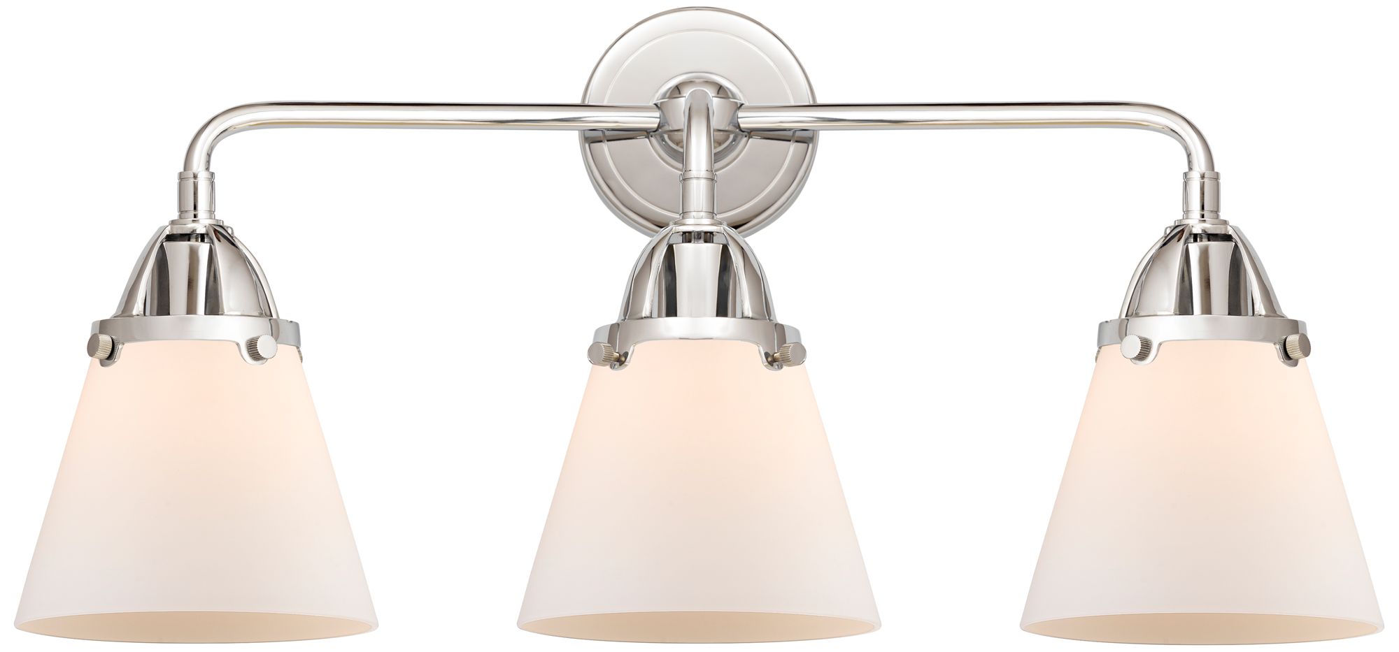 Nouveau 2 Cone 6" 3 Light 24" Bath Light - Polished Chrome - Whit