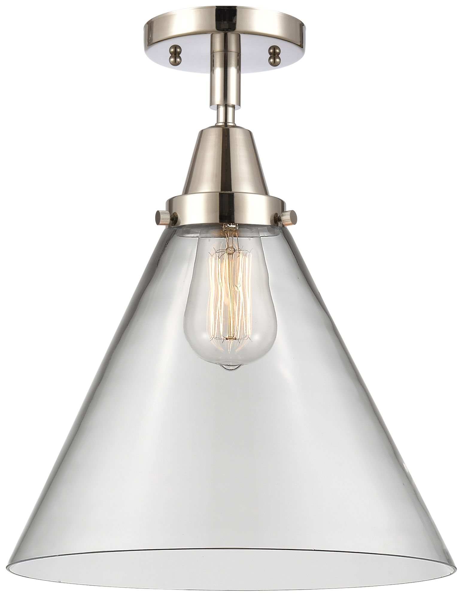 Caden Cone 12" LED Flush Mount - Polished Nickel - Clear Shade