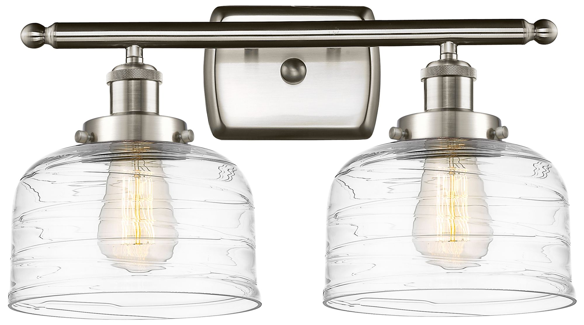Preston 16"W 2 Light Satin Nickel Bath Light w/ Bell Clear Shade