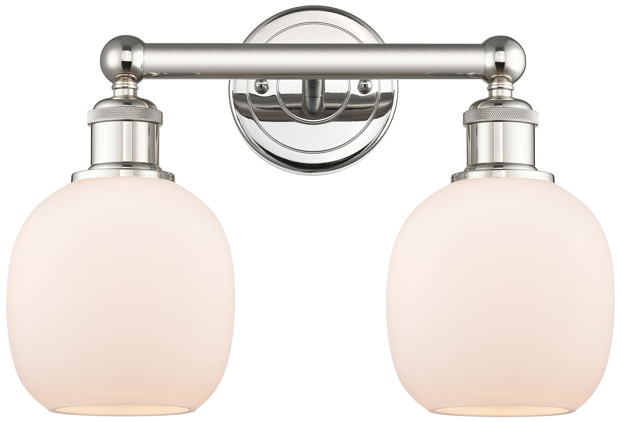 Belfast 15"W 2 Light Polished Nickel Bath Vanity Light With White Shad