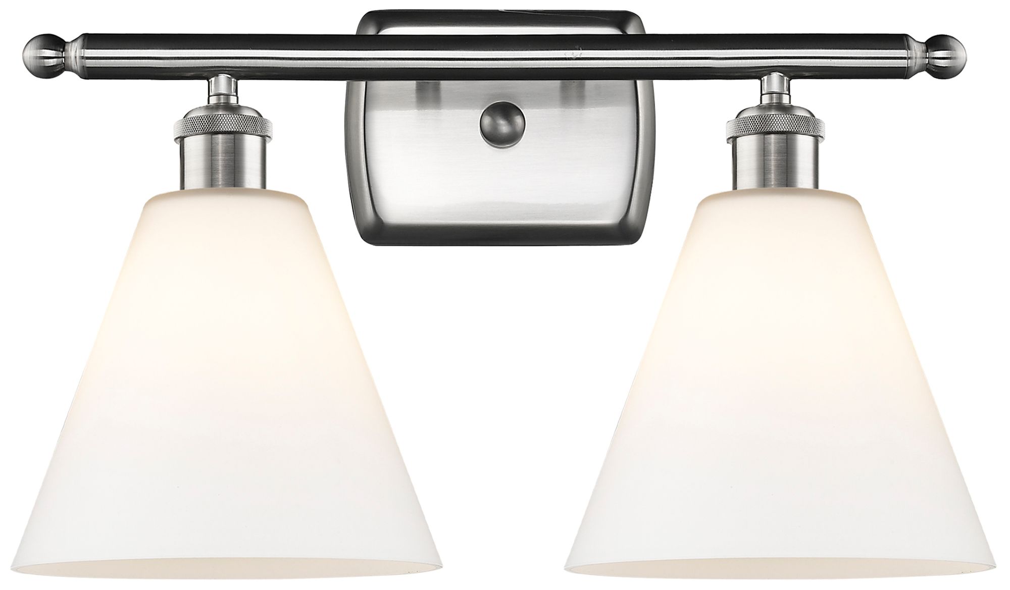 Berkshire 2 Light 18" Bath Light - Brushed Satin Nickel - Matte White