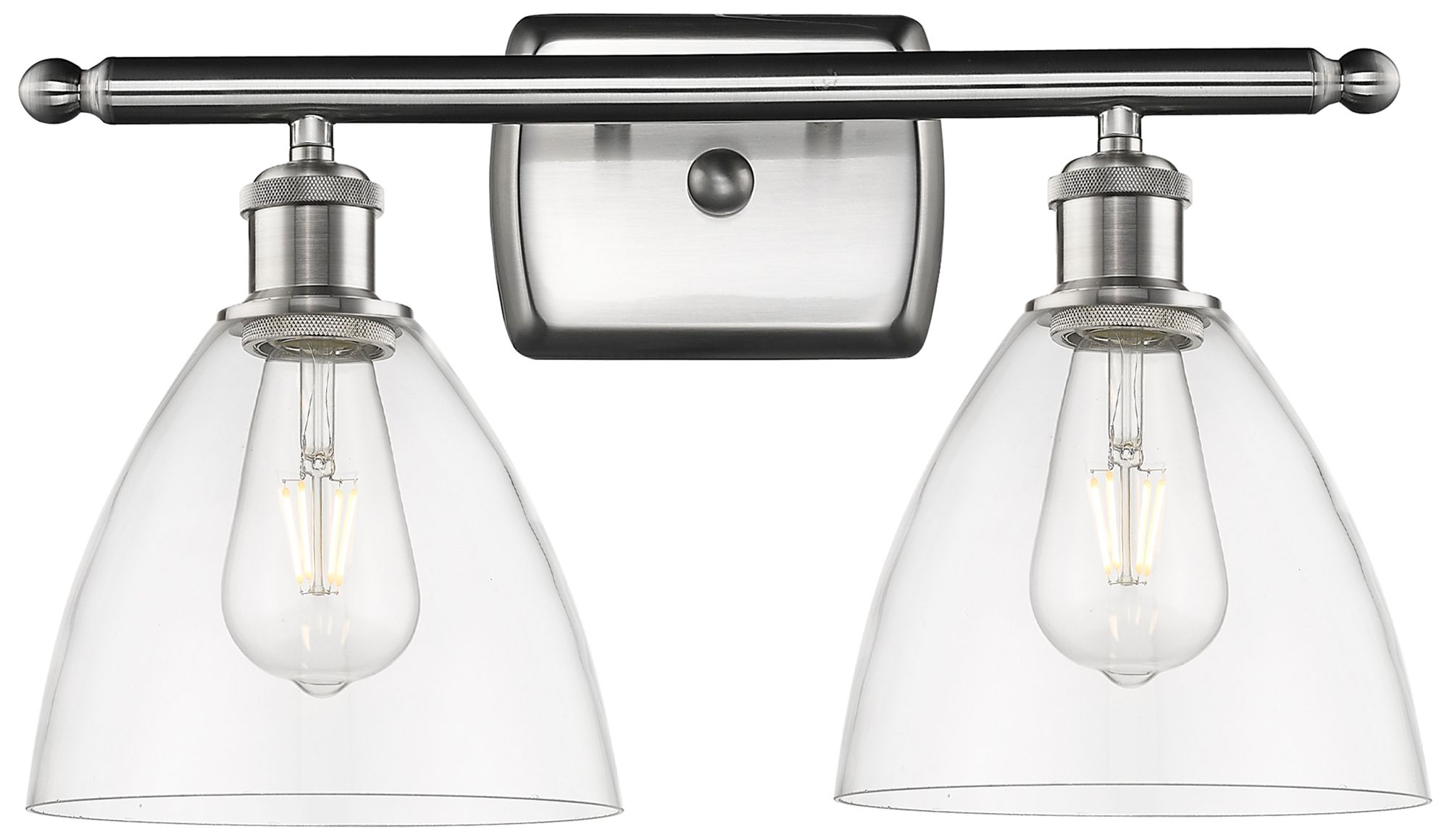 Bristol Glass 2 Light 18" Bath Light - Brushed Satin Nickel - Clear Sh