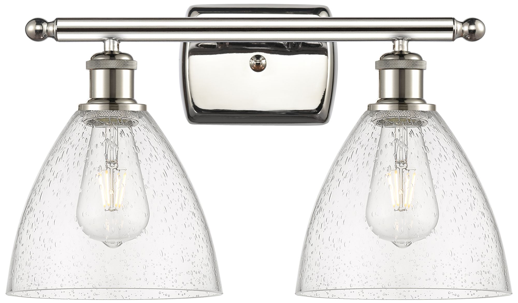 Bristol Glass 2 Light 18" Bath Light - Polished Nickel - Seedy Shade