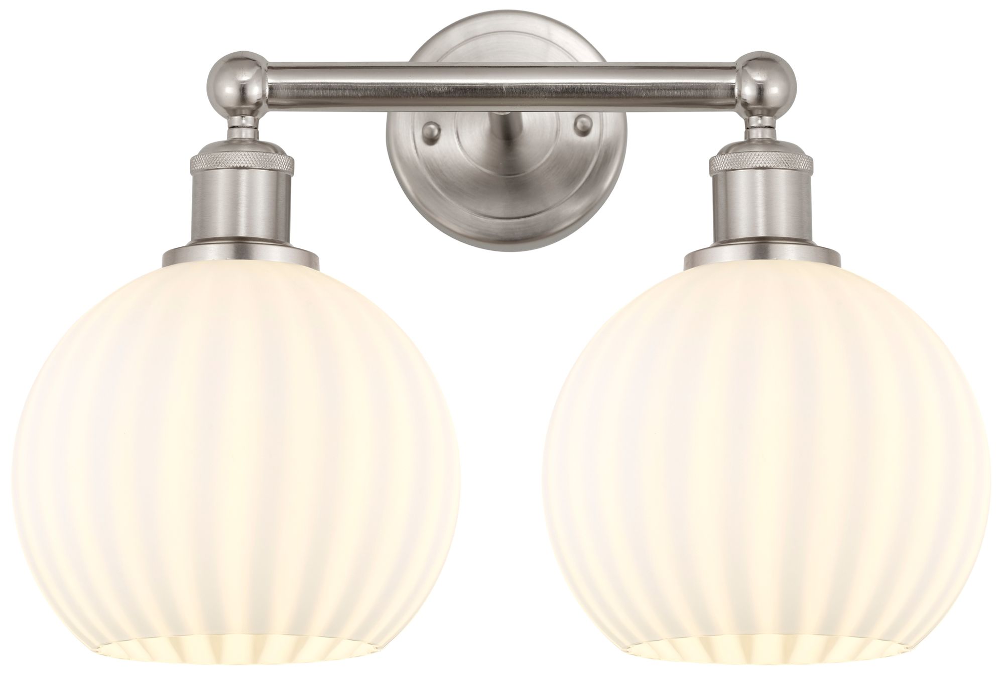 Edison 17" Wide 2 Light Satin Nickel Bath Light With White Venetian Sh