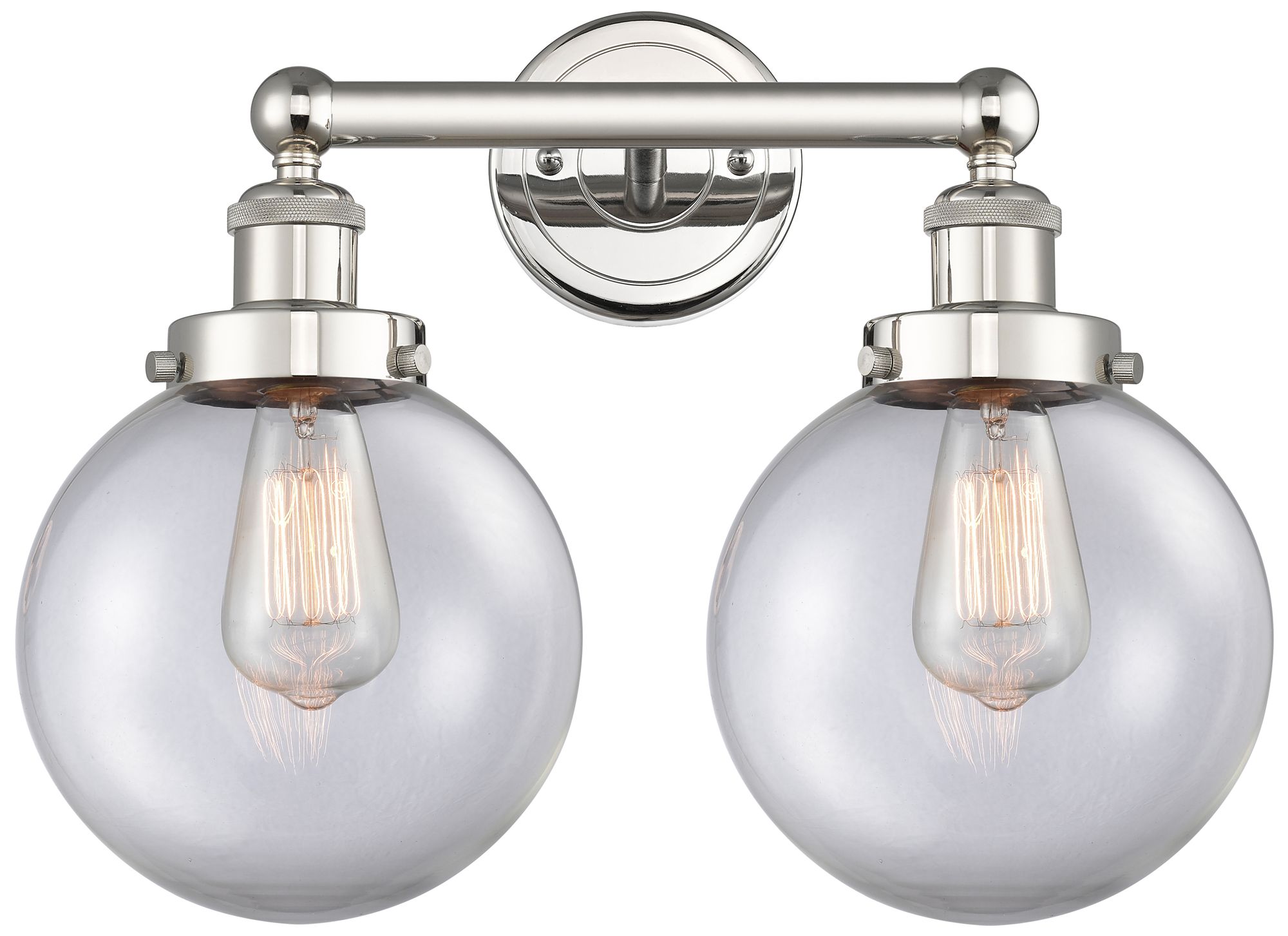 Edison Beacon 15.5"W 2 Light Polished Nickel Bath Light With Clear Sha
