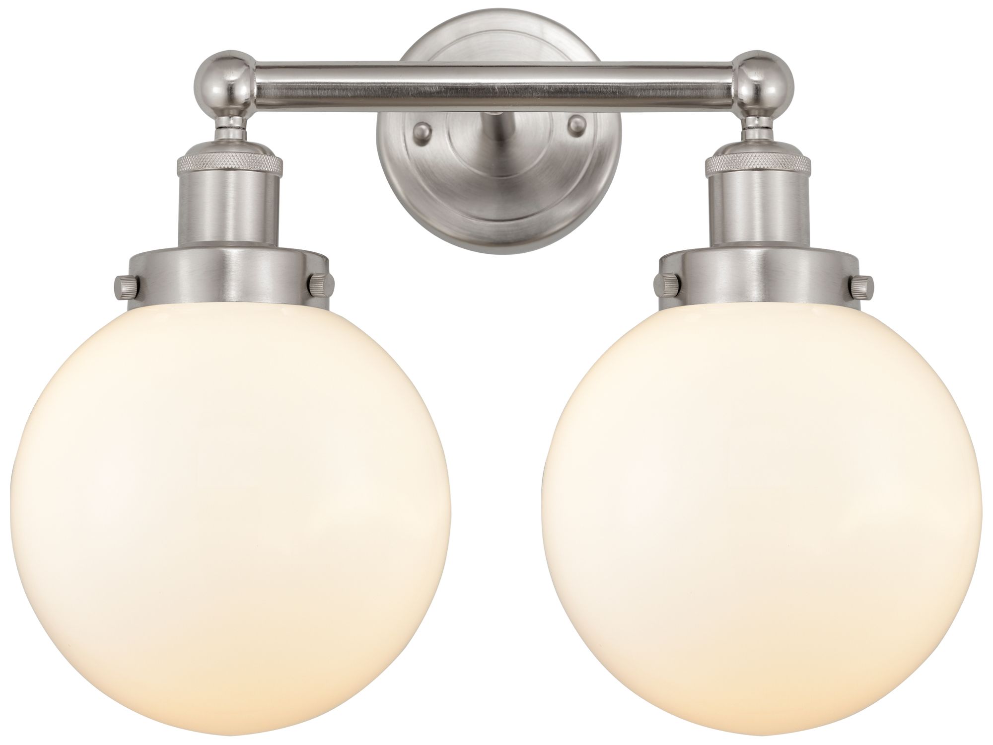 Edison Large Beacon 16" 2-Light Brushed Nickel Bath Light w/ White Sha
