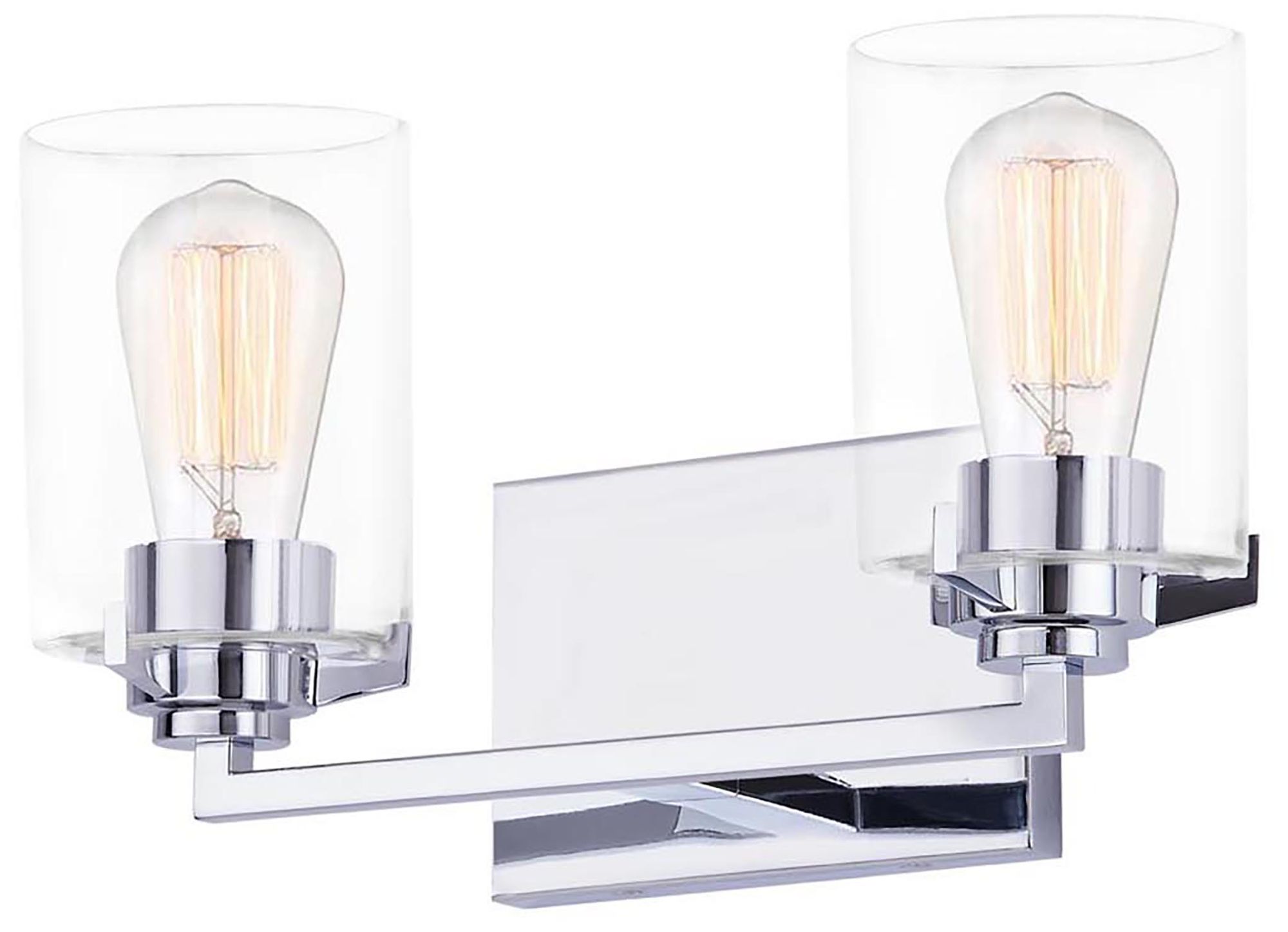 Cilindro 14.25"W 2.Light Polished Chrome Bath Bar With Clear Glass Sha
