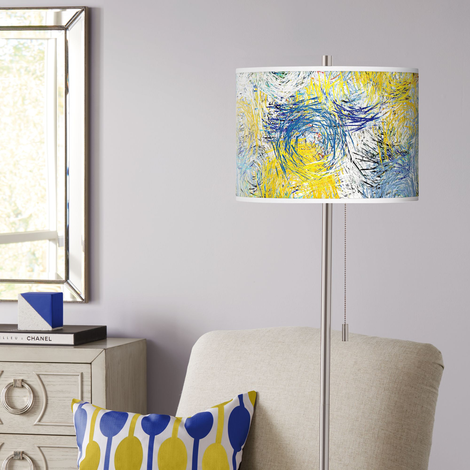 Kaleidoscope Flowers Brushed Nickel Pull Chain Floor Lamp