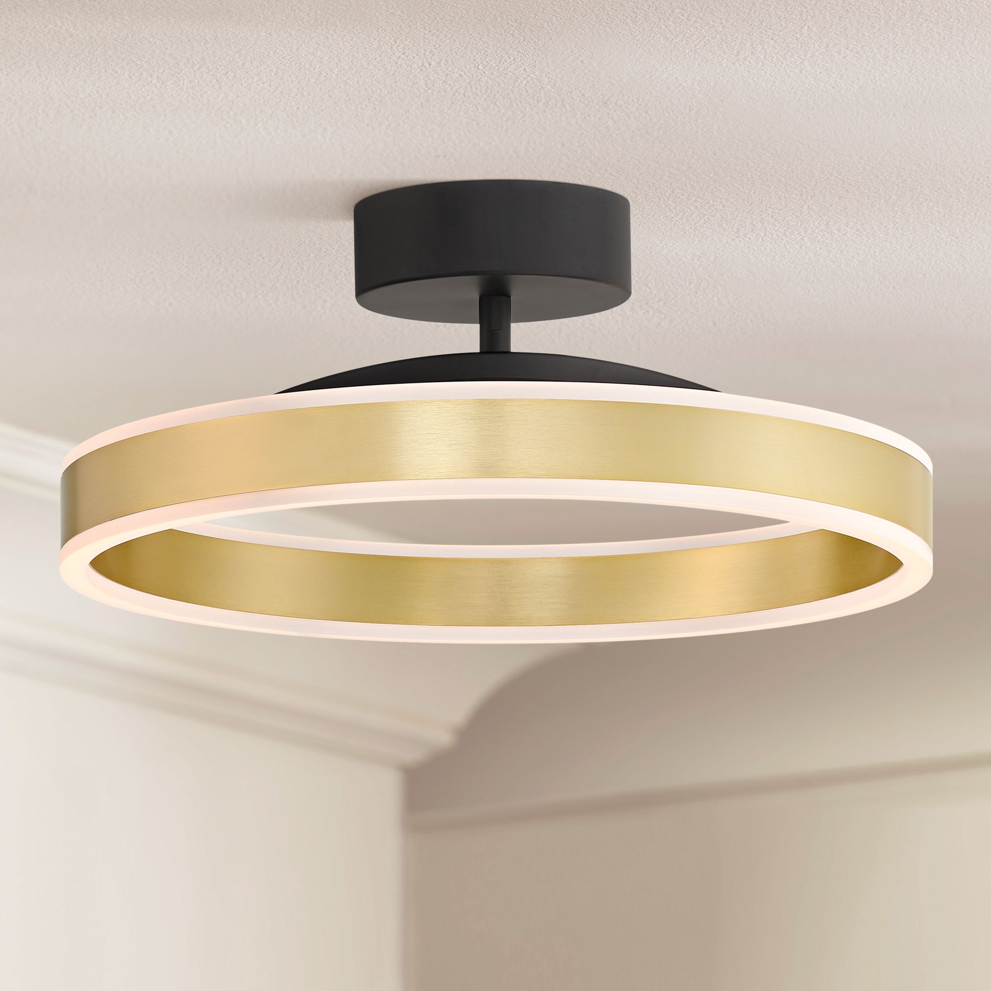 Possini Euro Eliza 16" Black and Brass Modern LED Ring Ceiling Light