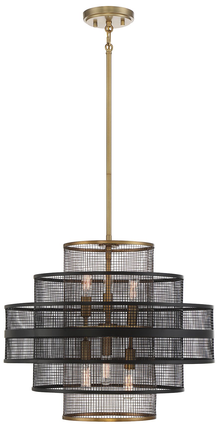 Kelvin 20" Wide Warm Brass Black 6-Light Tiered Pendant