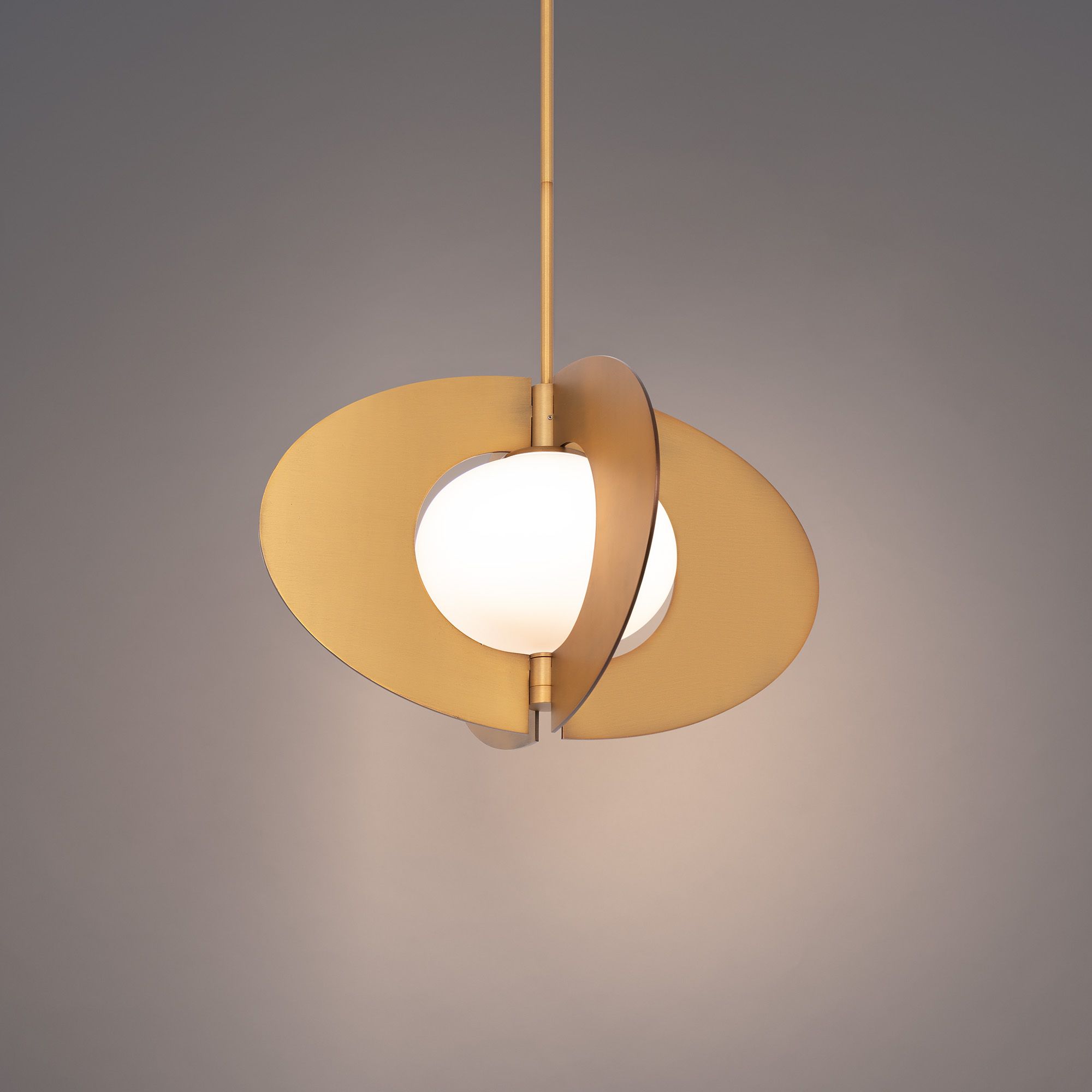 Modern Forms Echelon 16" Wide Brass and White Glass Oval Pendant