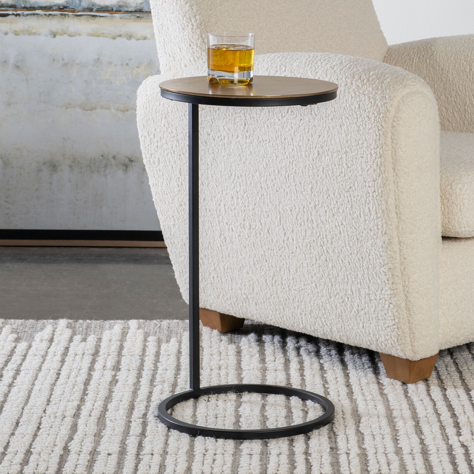 Brunei 12 1/2"W Aged Black Antique Gold Round Accent Table