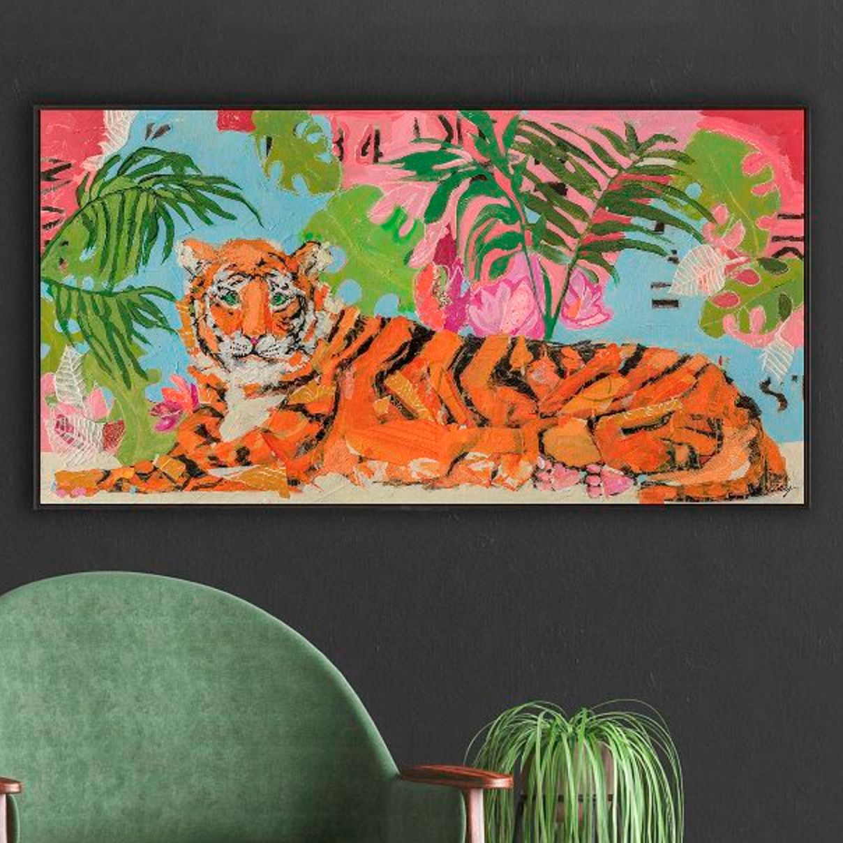 Tiger at Rest 36"W x 18"H Framed Art