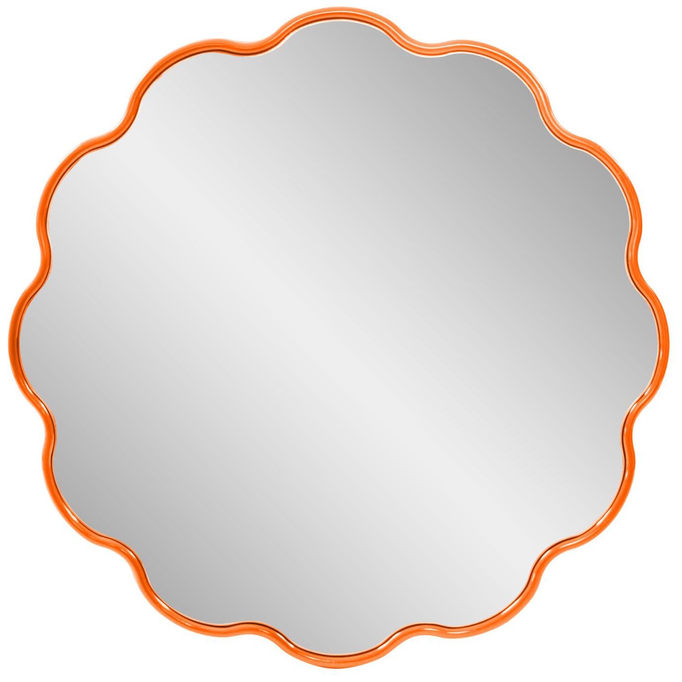 Howard Elliott Glossy Orange Round Scalloped Edge 34" Kushi Mirror