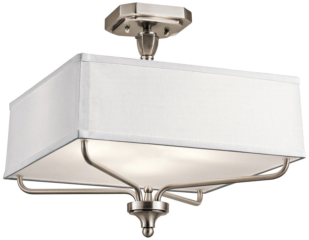 Kichler 15" Wide Nickel and White Etched Glass Ceiling Light