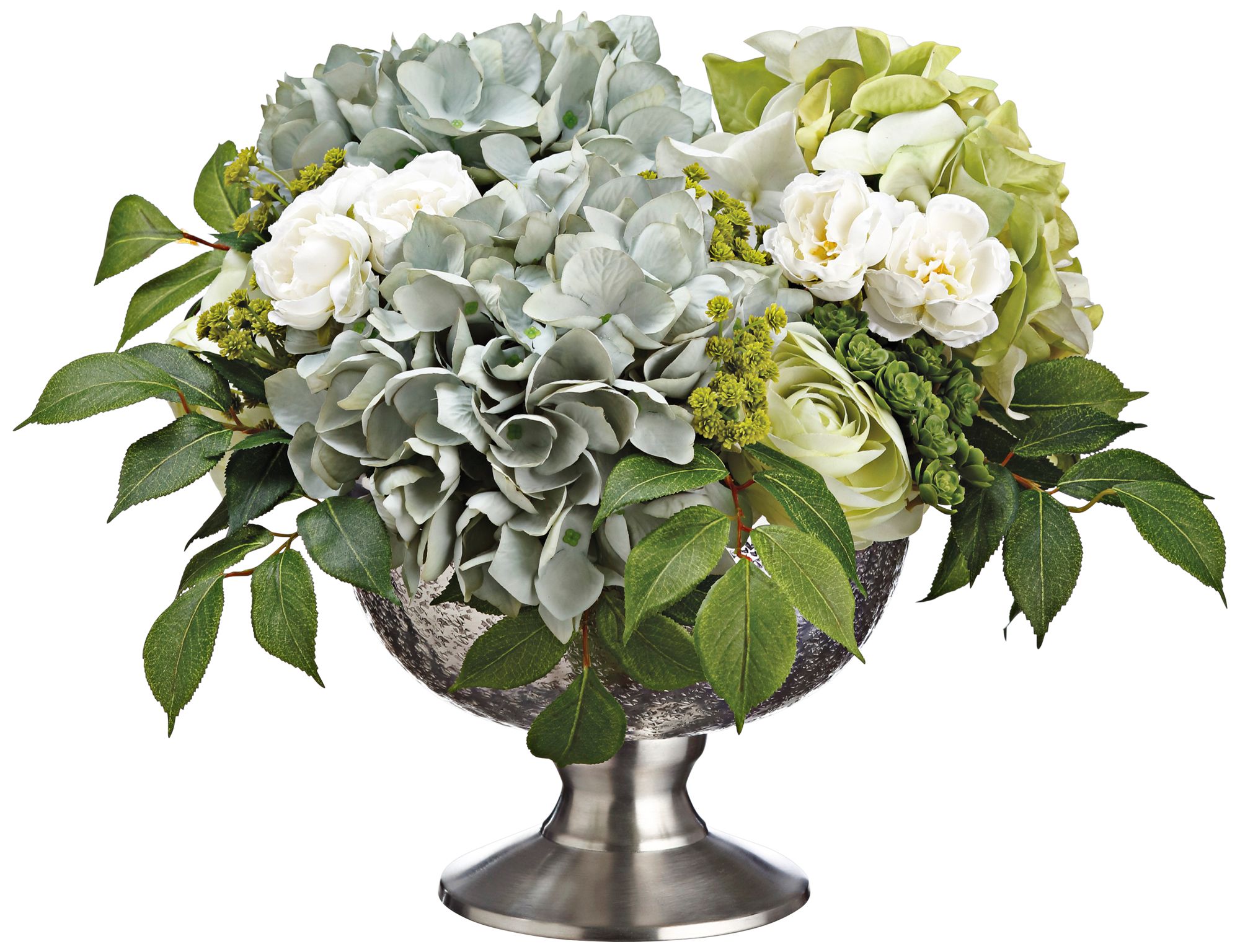 Hydrangeas, Ranunculus, Sedum 17" Wide Faux Flowers in Pot