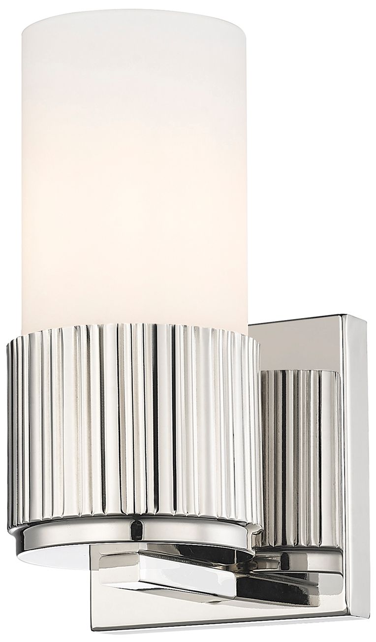 Bolivar 7.5" High Polished Nickel Sconce With Matte White Glass Shade