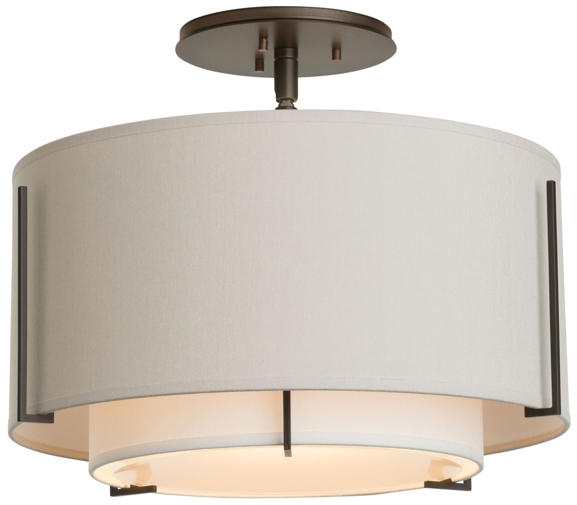 Hubbardton Forge Exos 16" Wide Smoke Finish Double Drum Ceiling Light