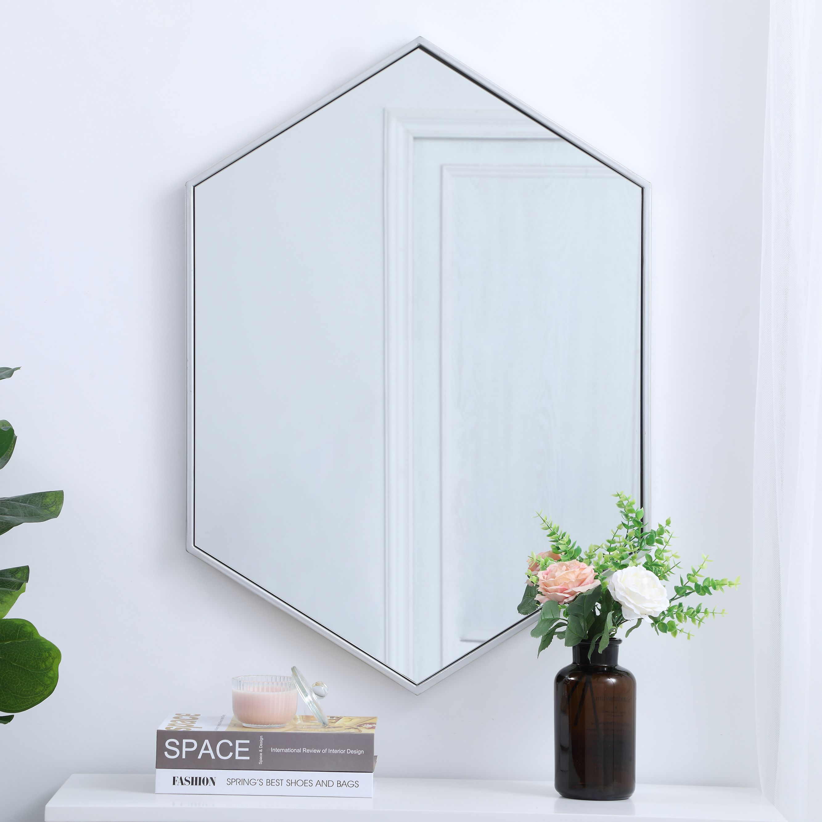 Decker Silver Metal 24" x 34" Hexagon Vanity Wall Mirror