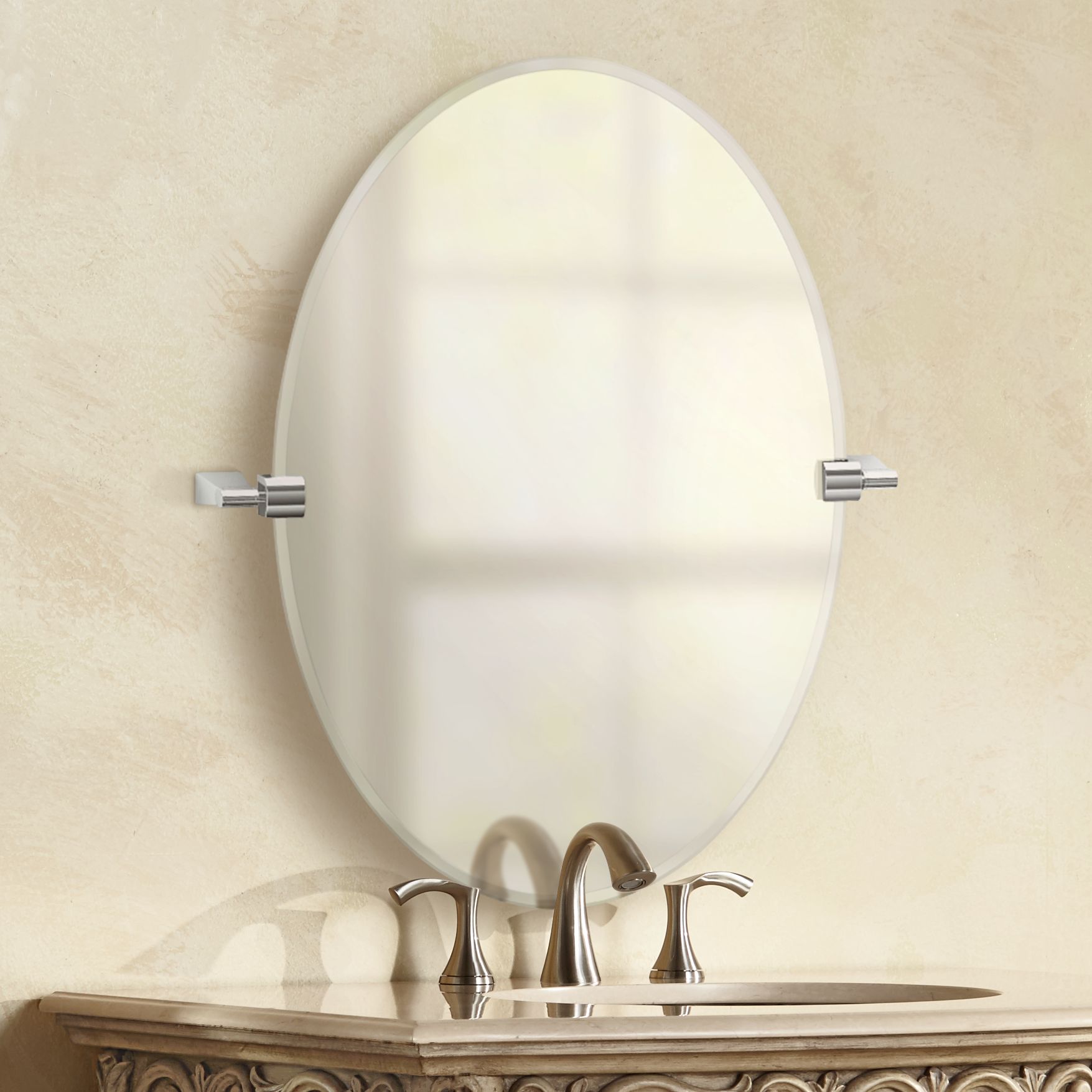 Gatco Tiara Chrome 32" High Frameless Oval Wall Mirror