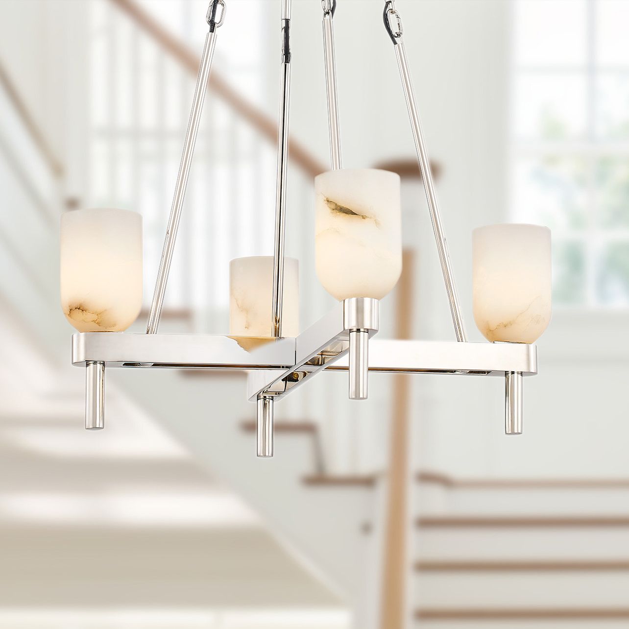 Alora Lucian E12 22-in Polished Nickel/Alabaster Chandelier