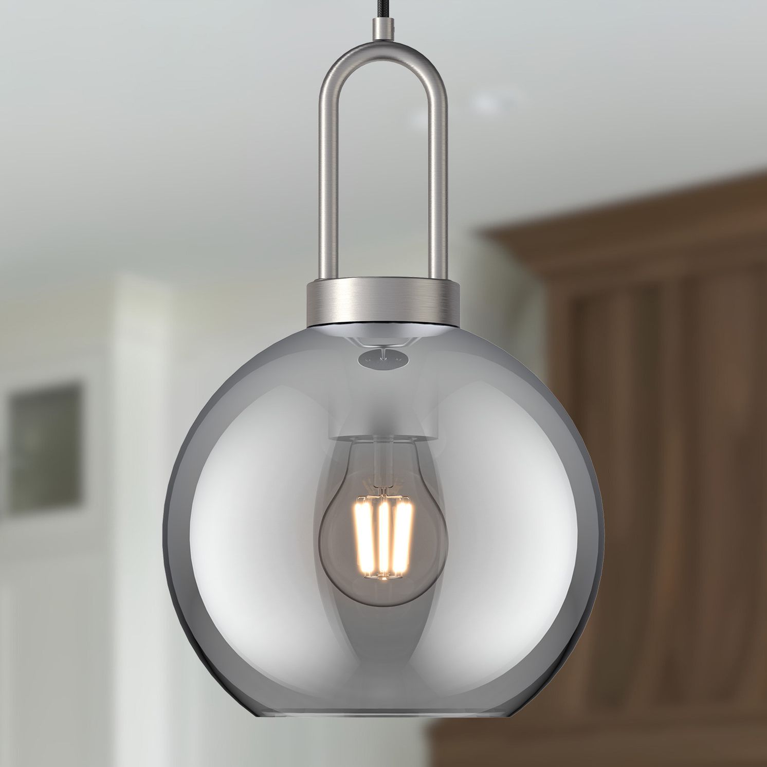 Alora Mood Soji E26 8-in Brushed Nickel/Smoked Solid Glass Pendant