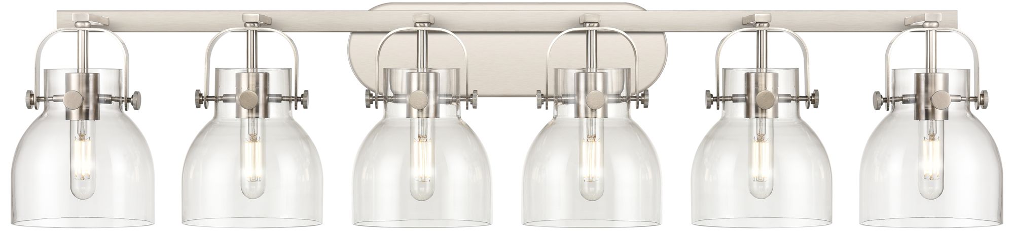 Pilaster II Bell 45.5" Wide 6 Light Satin Nickel Bath Light w/ Clear S