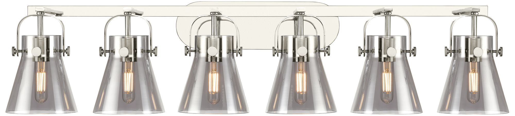 Pilaster II Cone 45.5"W 6 Light Polished Nickel Bath Light w/ Smoke Sh